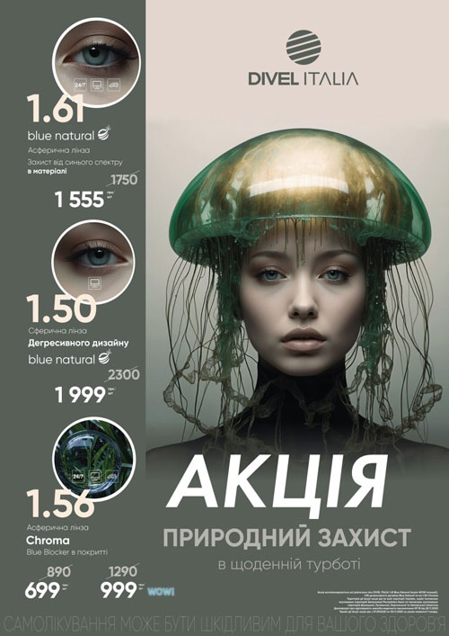*Деталі у продавців-консультантів. Реклама медичного виробу. Перед застосуванням обов’язково проконсультуйтеся з лікарем. Знижки поширюються на обрані позиції лінз бренду Divel Italia. Акція діє з 01.09.2025 р. по 30.11.2025 р. включно.