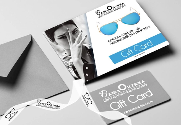 Подарункова картка "Ваша Оптика" - подаруйте своїм коханим, рідним або друзям! Це найкраща ідея подарунку для ваших близьких. Виберіть подарункову картку з номіналом, який вас цікавить (з трьох доступних), щоб використовувати для покупок в одному з наших 8-ми салонів "Ваша Оптика".